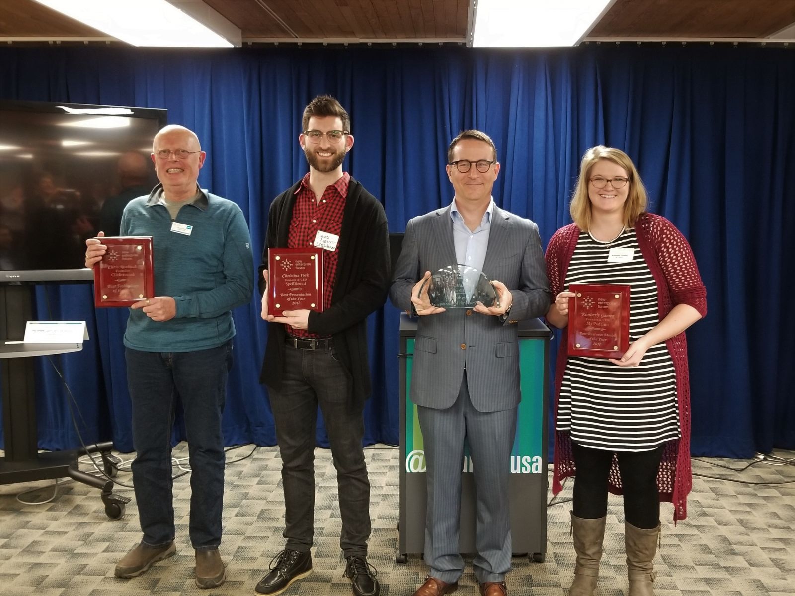 Spark Central was packed in anticipation of the presentations of the NEF 2017 awards. Four entrepreneurs received awards and were congratulated for their hard work, dedication, and ingenuity. From left to right - Chris Roebuck of Clicktivated won for Best Technology. Francis Glorie accepted the award for Chris. Clicktivated transforms video into an immersive, interactive, and shoppable brand experience allowing viewers to easily shop and learn more about the products they like with a click or touch. Christina York of SpellBound won Best Presentation. David Nesbitt accepted for Christina. SpellBound is a therapeutic tool that uses augmented reality technology to calm children before medical procedures and increase their cooperation with treatment. Jeff Mason of Groundspeed Analytics won Entrepreneur of the Year. Groundspeed Analytics utilizes machine learning to transform unstructured business documents into streamlined, actionable data to help insurance carriers and brokers meet their goals. They recently closed on a $2 M investment. Kimberly Gamez of Mi Padrino won Best Business Model. Lauren Lively accepted for Kimberly. Mi Padrino is a moderating organization specializing in crowed-gifting events for the Hispanic event market offering both a B2C and a B2B revenue model. Congratulations again to all of them.